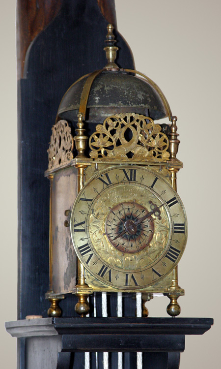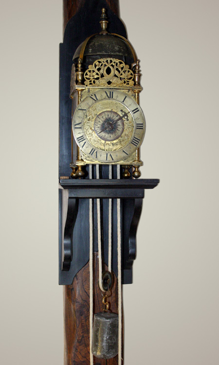 The clock was originally balance wheel and has a very early conversion to anchor which is retained (this conversion is common and also involved the removal of the alarm work). Apart from this, the clock is very original except for the top finial and a door handle which were added during conservation. The clock keeps excellent time and, as with most of these early clocks, has a 12 hour duration.