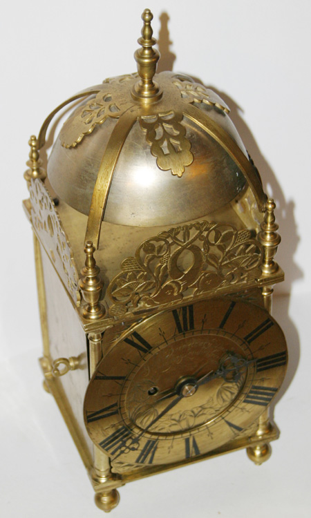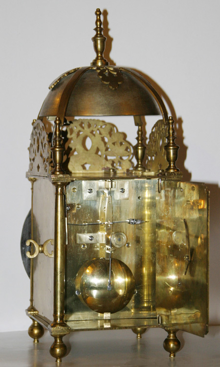A fine late-seventeenth century english lantern clock by John Barnett with later twin fusee movement. The high-quality 8-day twin-fusee movement makes the clock freestanding and free from chains or rope and pendulum.