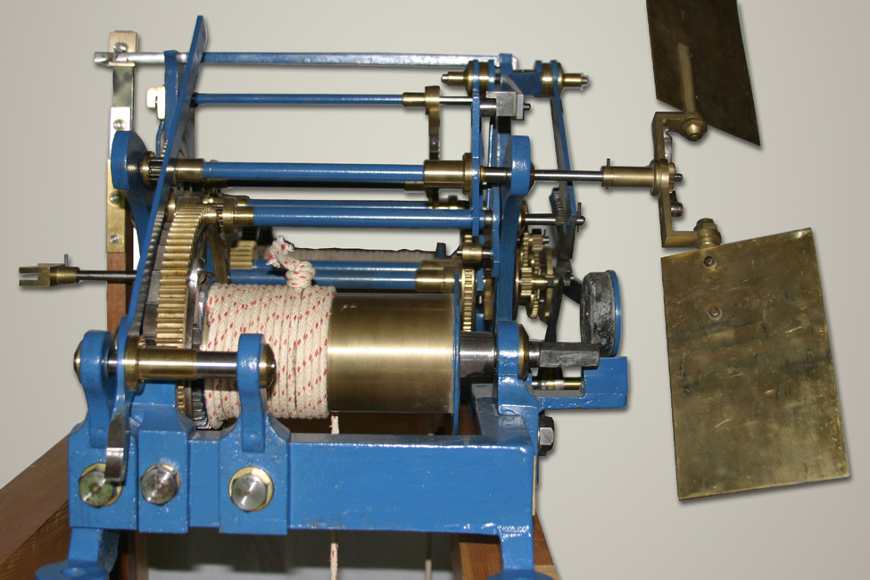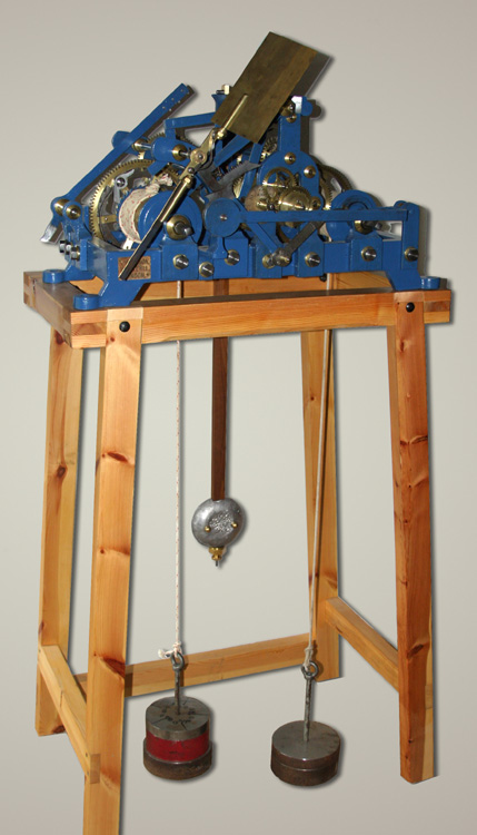 The movement is 78.5 cm wide, 64 cm deep and 40 cm high. The wooden display stand is 118 cm high.