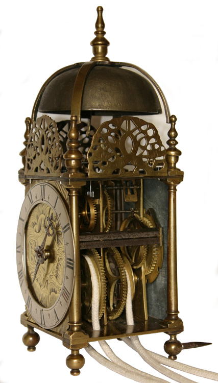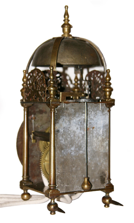 Very rare to find these smaller lantern clocks (under 12" high) compared with the more common full-size (15"-16" high) lanterns or the miniature alarms.