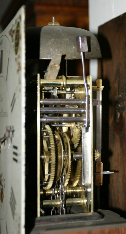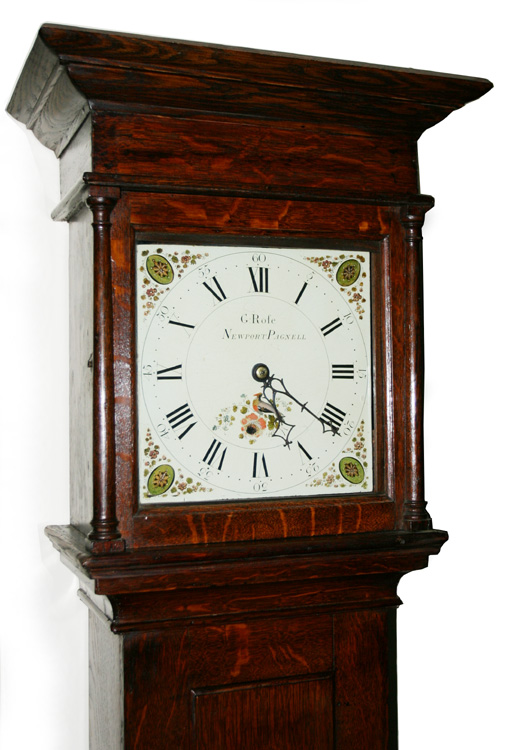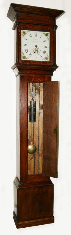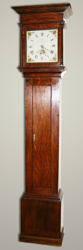 A George III oak longcase with 10" square painted dial and 30-hour plated movement. Fine steel hands.
