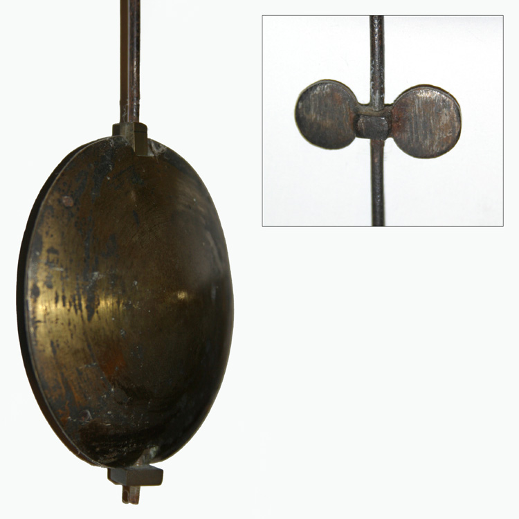Nice early high domed double brass faced pendulum bob with feature thumb grip to pendulum rod.